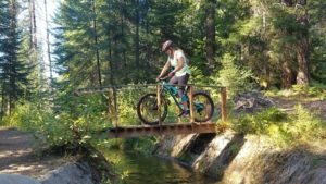 Went for a ride on the trails here at the campground and had a great time! Fun hills to race down, fun bridges to ride over, and a fun water pipe to climb on. I have to admit, I thought the drop-off would be a little bit more impressive on the other side of the water drainage ditch / pipe but it just dropped down onto a road. And to end the ride I finally saw some deer.