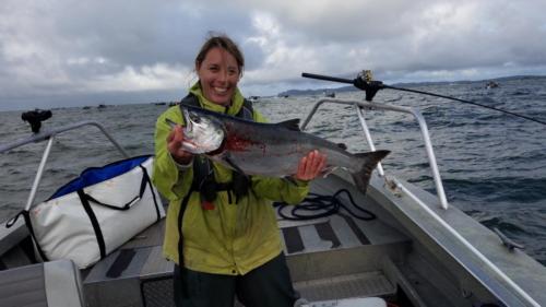 Late Friday night I was given a last minute opportunity to go Salmon fishing on Saturday morning. What a time we had! It seemed we never had more than 5 minutes to be still before there was a fish on the line and we all sprang into action. I caught 2 but one was a ‘little guy’ (still bigger than any fish I had caught before this excursion but was not big enough to keep). However, the King Silver I got to keep was about 22 pounds and was so much fun to land! What a dance we danced as I coaxed him into the boat. All in all a wonderful morning.