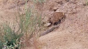 I knew there were rattle snakes in Phoenix AZ but as yet I hadn’t seen one. Today while hiking at Lake Bartlett just west of Carefree we suddenly came across a HUGE diamond back rattle snake sunning itself across the trail. As we are two sensible people we stopped short and took a few steps back. The snake began to move and coiled the top 1/8th of his body so he could get a better look at us. He lay there flicking his tongue tasting the air and feeling the vibrations trying to determine if we were a threat or not. Eventually he got tired of us standing there disturbing his relaxation and slithered up the hill and out of sight giving us safe passage. What a moment! What a memory!