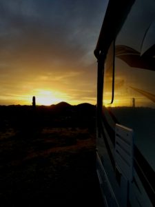 I have found myself drawn to sunsets lately. They remind me to reflect on the day and all it’s goodness. It is tough to look at a beautiful sunset and think of anything but good. Tonight I leaned out of the door to my RV and snapped a photo, unintentionally capturing the reflection of the sunset in the photo for an incredibly gorgeous effect.