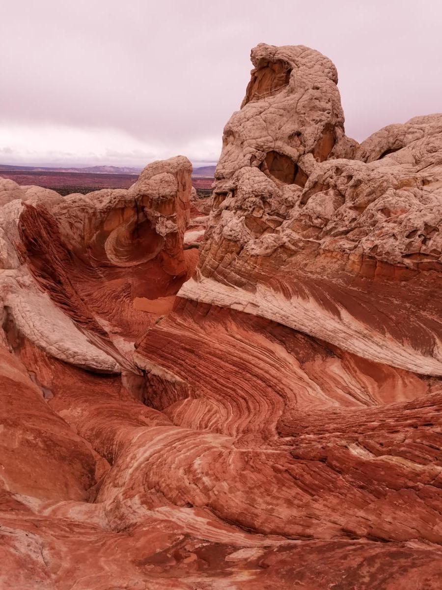 Once I arrived the unique landscape was …well unique. White Pocket is part of the coyote bluffs which is where the famed WAVE is located. White pocket’s features are similar to the wave with swirling, thin-layered strata, adjacent layers of contrasting color, and curious erosive features. The pictures don’t quite do it justice.